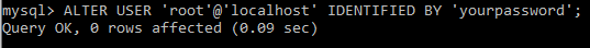 mysql> ALTER USER 'root'@'localhost' IDENTIFIED BY 'new_password'; |